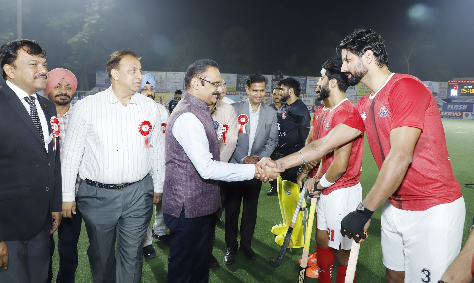 42nd Indian Oil Servo Surjit Hockey Tournament Punjab Police Jalandhar defeated Punjab & Sind Bank by a margin of 5-0 Army XI defeated CRPF Delhi by 2-1 Jalandhar, October 23 ( ) Punjab Police Jalandhar team, equipped with 10 Olympian players, made a strong start in the 42nd Indian Oil Servo Surjit Hockey Tournament by defeating Punjab & Sind Bank Delhi by a margin of 5-0 and accumulated three points in its account. In the second match, Army XI defeated CRPF Delhi by a margin of 2-1 and earned three points. The tournament, which started at the local Olympian Surjit Hockey Stadium, was inaugurated by Rajya Sabha member Ashok Mittal. On this occasion, he introduced the teams. Hockey India Vice President, Hockey Punjab President Nitan Kohli and Indian Oil General Manager Yashpal Kant were specially present with him. On this occasion, the children of IVY World School performed a gymnastics show. The opening match was played between Punjab Police, adorned with Olympian players, and Punjab and Sind Bank Delhi in Pool B. In the first quarter of the game, the bank fought back against the police. In the 20th minute of the second quarter, Punjab Police captain Olympian Harmanpreet Singh scored a goal through a penalty corner to make the score 1-0. In the 26th minute of the game, captain Harmanpreet Singh scored a goal through the second penalty corner to make the score 2-0. In the 31st minute, Harmanpreet Singh converted a penalty stroke into a goal and scored the first hat-trick of the tournament. In the 35th minute of the second half of the game, Olympian Mandeep Singh scored a field goal to make the police 4-0 ahead. In the 40th minute of the game, Olympian Akashdeep Singh scored a field goal to make the score 5-0 and won the match and earned three points. In the Pool D match, Army XI defeated CRPF Delhi 2-1 after a tough match and earned three points. In the 10th minute of the game, Shamsher scored a goal for CRPF to make the score 1-0. In the 30th minute of the game, Army's Daryachil Yadav scored a goal to make the score 1-1. In the 55th minute of the game, Army XI's Atish Dodri scored a goal through a penalty corner to make the score 2-1 and earned three points by winning the match. During today's matches, Jalandhar Deputy Commissioner Himashu Agarwal, Olympian Harpreet Singh Mander, Lakhwinder Pal Singh Khaira, Iqbal Singh Sandhu, Surinder Singh Bhapa, Gurwinder Singh Gullu, Ram Pratap, Professor Kirpal Singh Matharu, LR Nayyar, Baljit Singh Olympian Surjit Singh's elder brother, Harinder Sangha, Gurinder Sangha, Ranbir Tut, Olympian Mandeep Singh's wife Udita, Amandeep Kaur, Narinder Pal Singh Judge, Natha Singh Gakhal, Olympian Mukhbain Singh, Baljit Singh Chandi, Rajwinder Thiara, Mangal Singh Bassi, Ramtax Company owner Jatinder Pal Singh, Gaurav Mahajan, Kulwinder Singh Thiara were specially present. Matches of 24th October RCF Kapurthala vs Indian Navy – 4-30 pm CAG New Delhi vs BSF Jalandhar – 5-45 pm